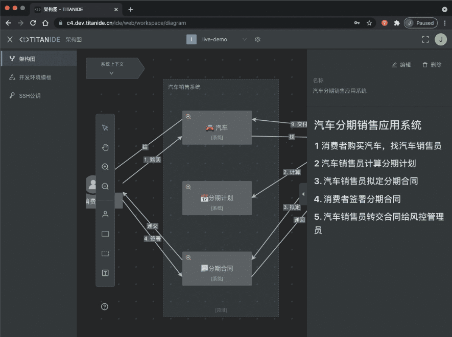 以今年会创新的 TitanIDE 为例,TitanIDE 是云原生集成开发环境,聚焦解决软件设计开发过程中面临的效能、成本、安全等问题的基于全云端的集成设计开发环境,助力实现企业研发降本增效、代码安全管控、数字资产保护等功能。