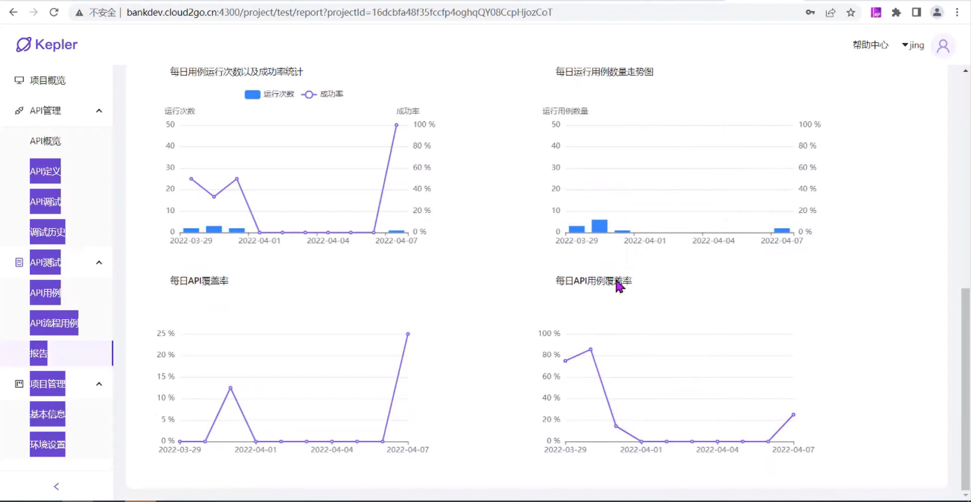 通过一键、批量运行、创建用例集以及再次运行等方式快速进行回归测试;同时系统会自动识别API变动所对API用例产生的影响访问,减少测试访问,进行更快速的精准测试